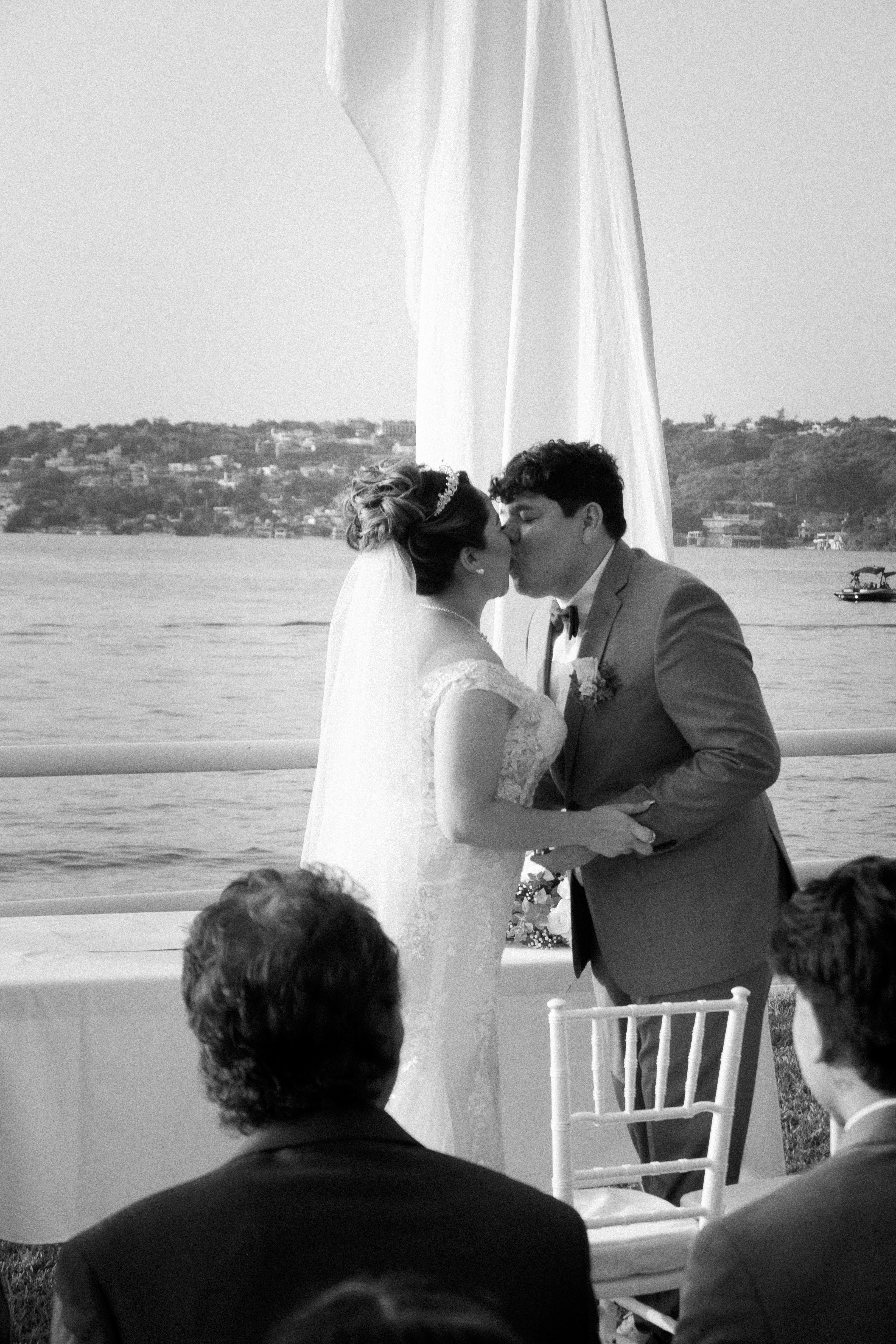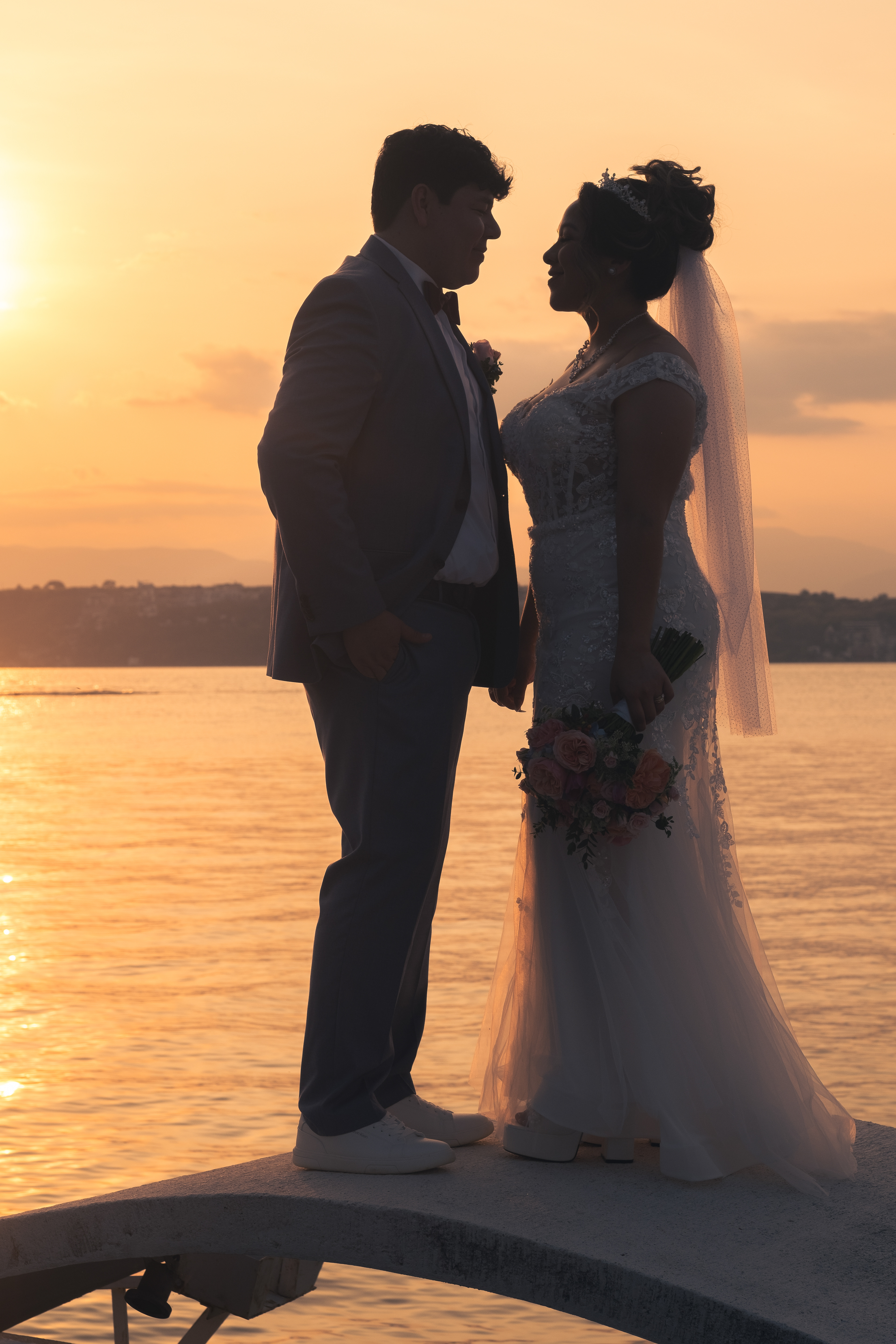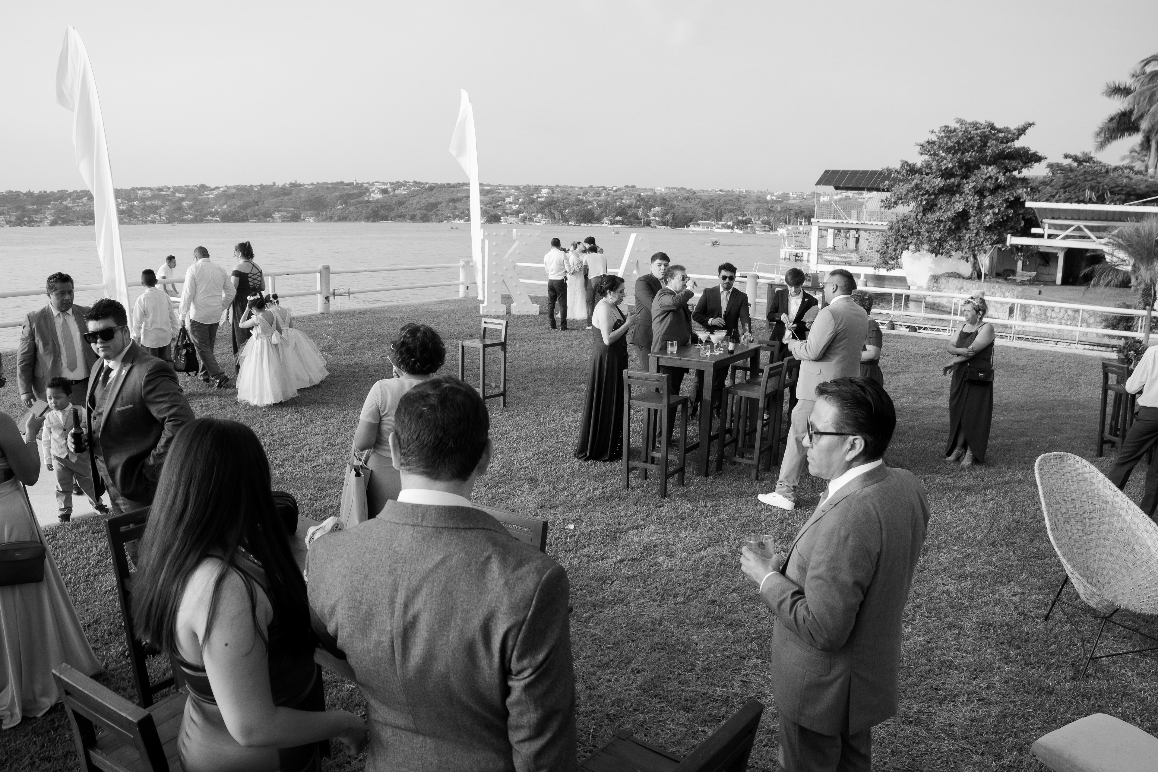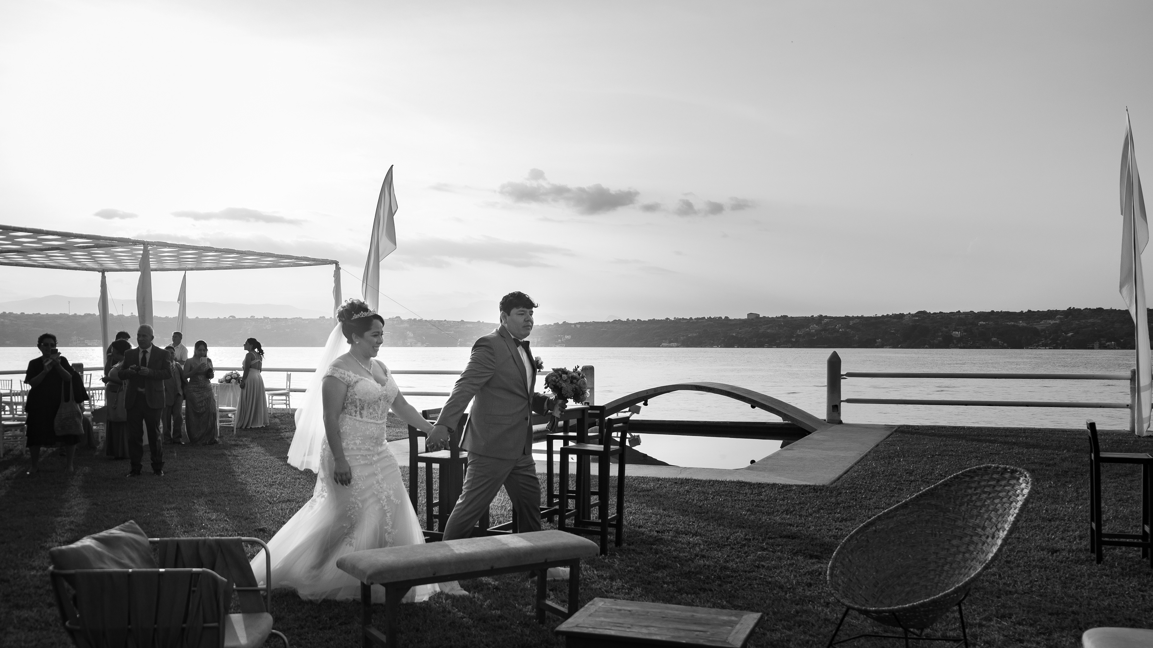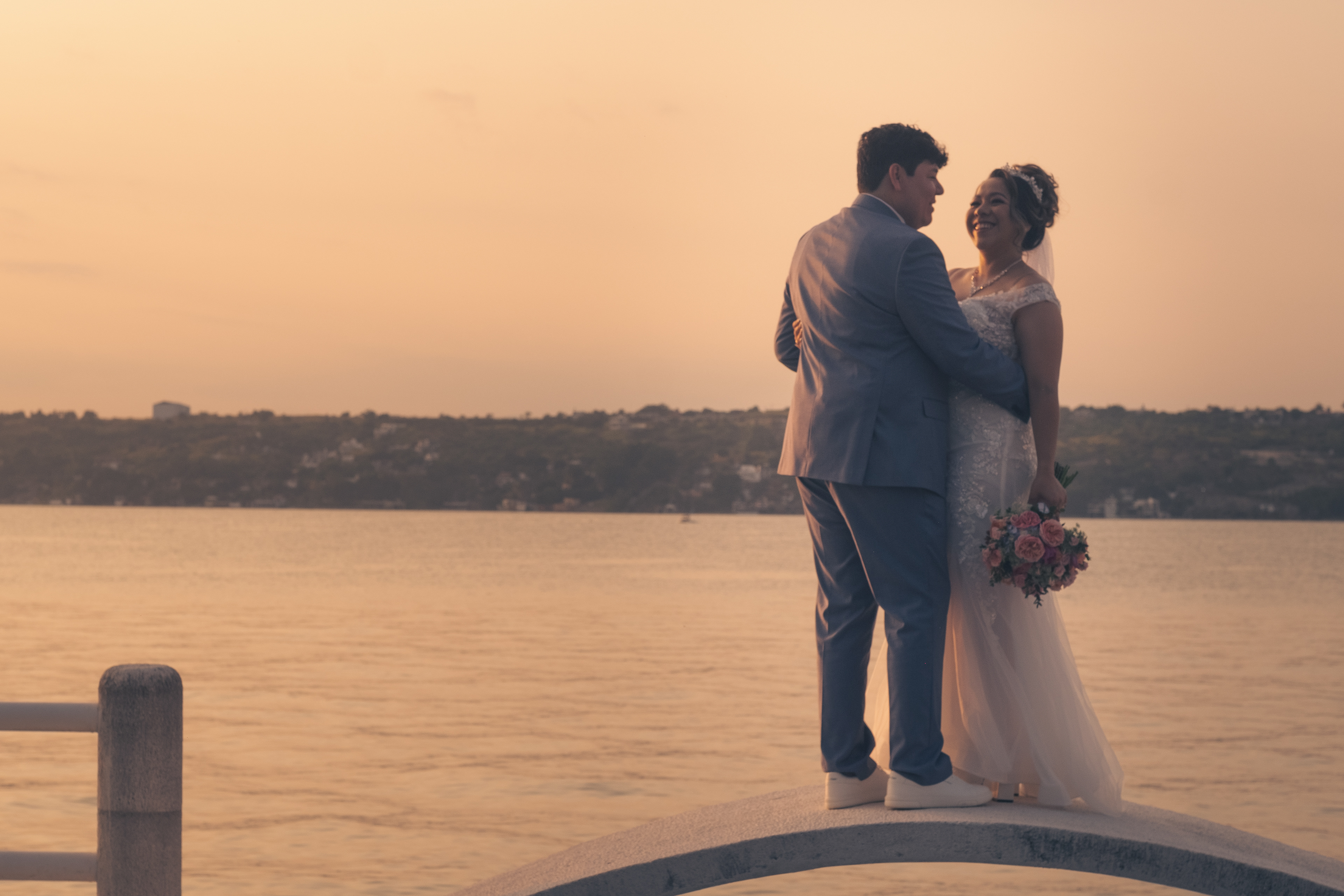 La boda se celebró frente al lago de Tequesquitengo, en un escenario abierto y rodeado de calma. El agua fue testigo de cada momento y, al caer la tarde, el cielo se pintó de tonos naranjas que envolvieron a los novios y a sus invitados. Algunos de los retratos más especiales surgieron en ese atardecer: siluetas, reflejos y miradas iluminadas por una luz cálida que parecía hecha a la medida del día. Un recuerdo que une el paisaje con la emoción de una promesa compartida.