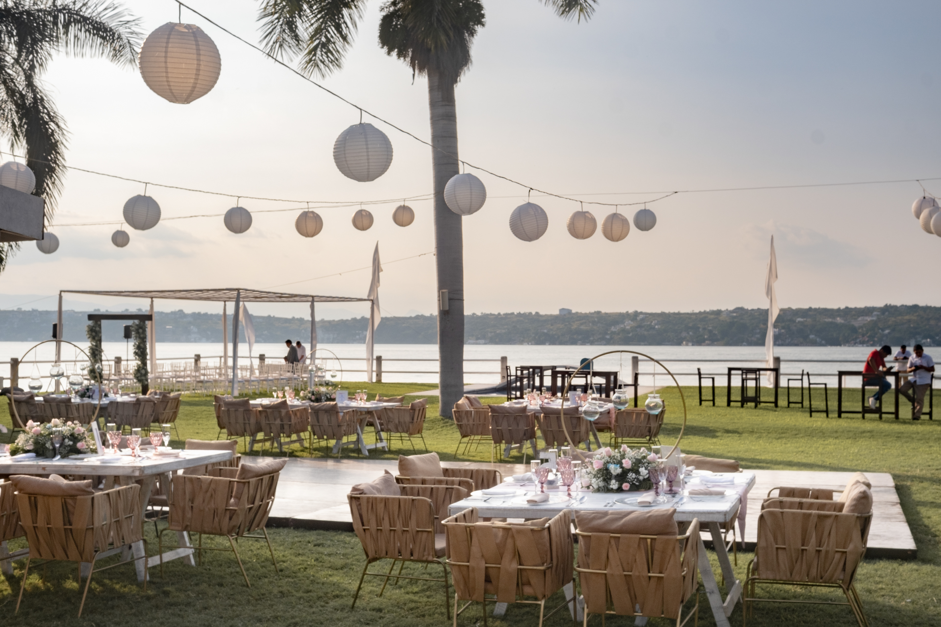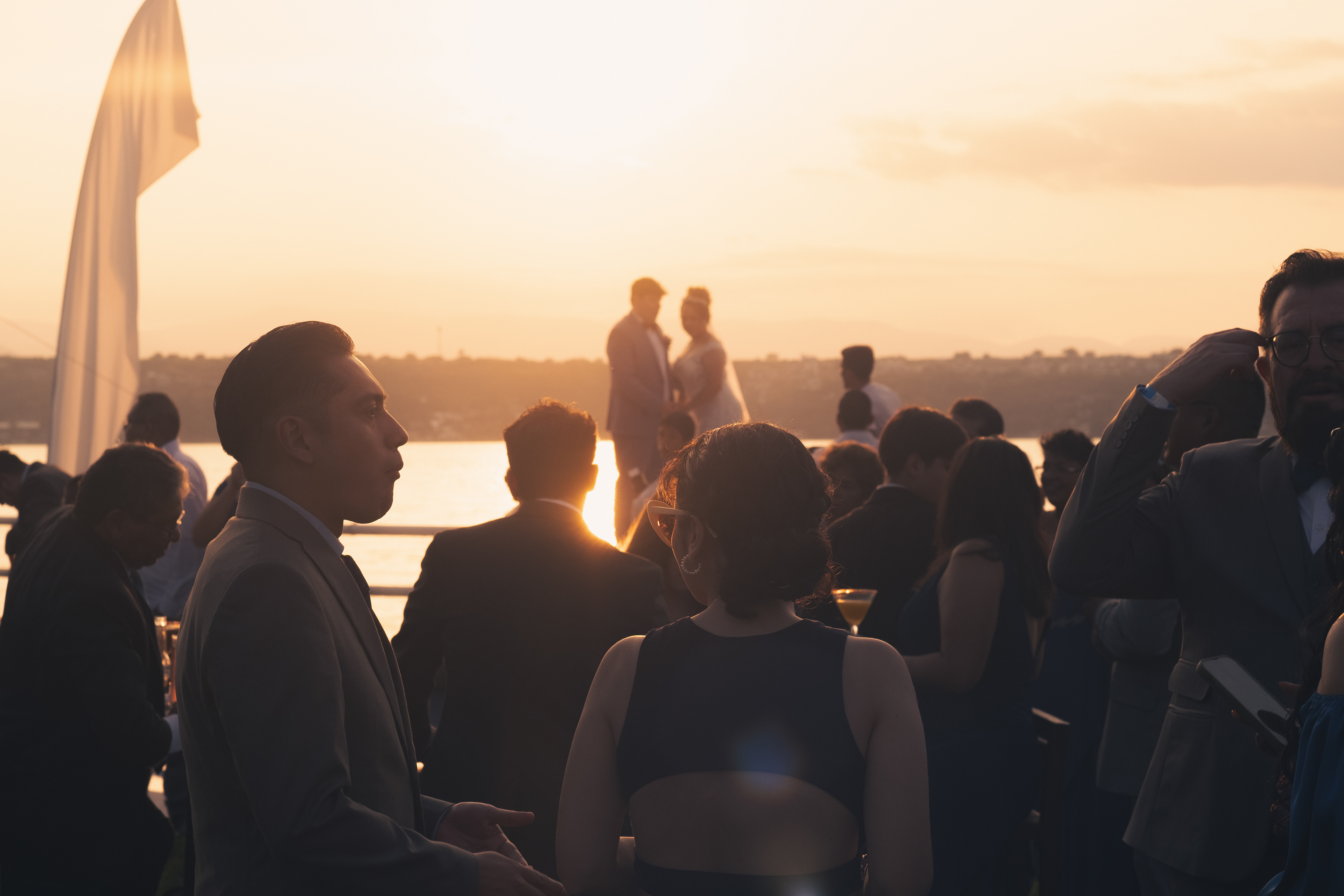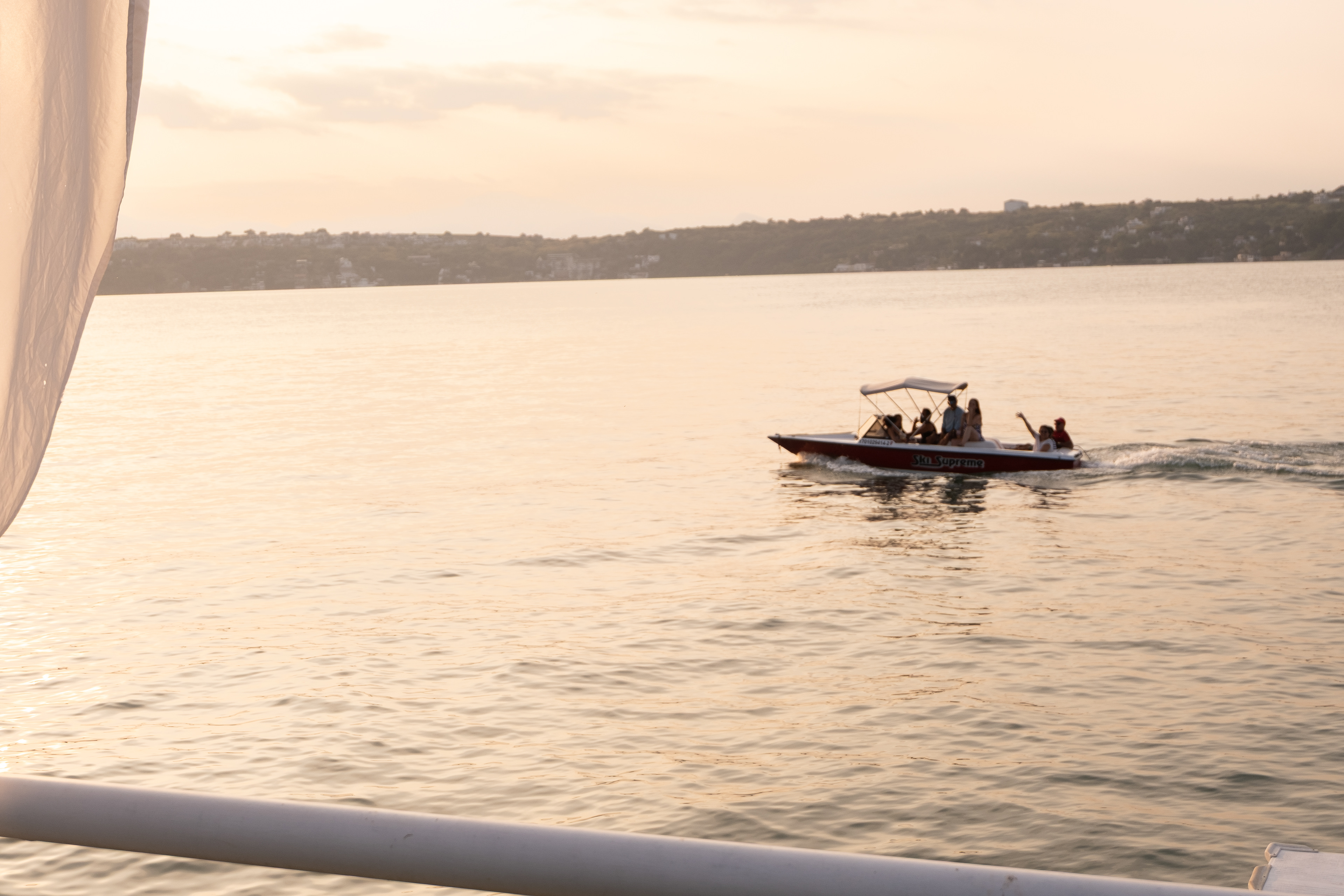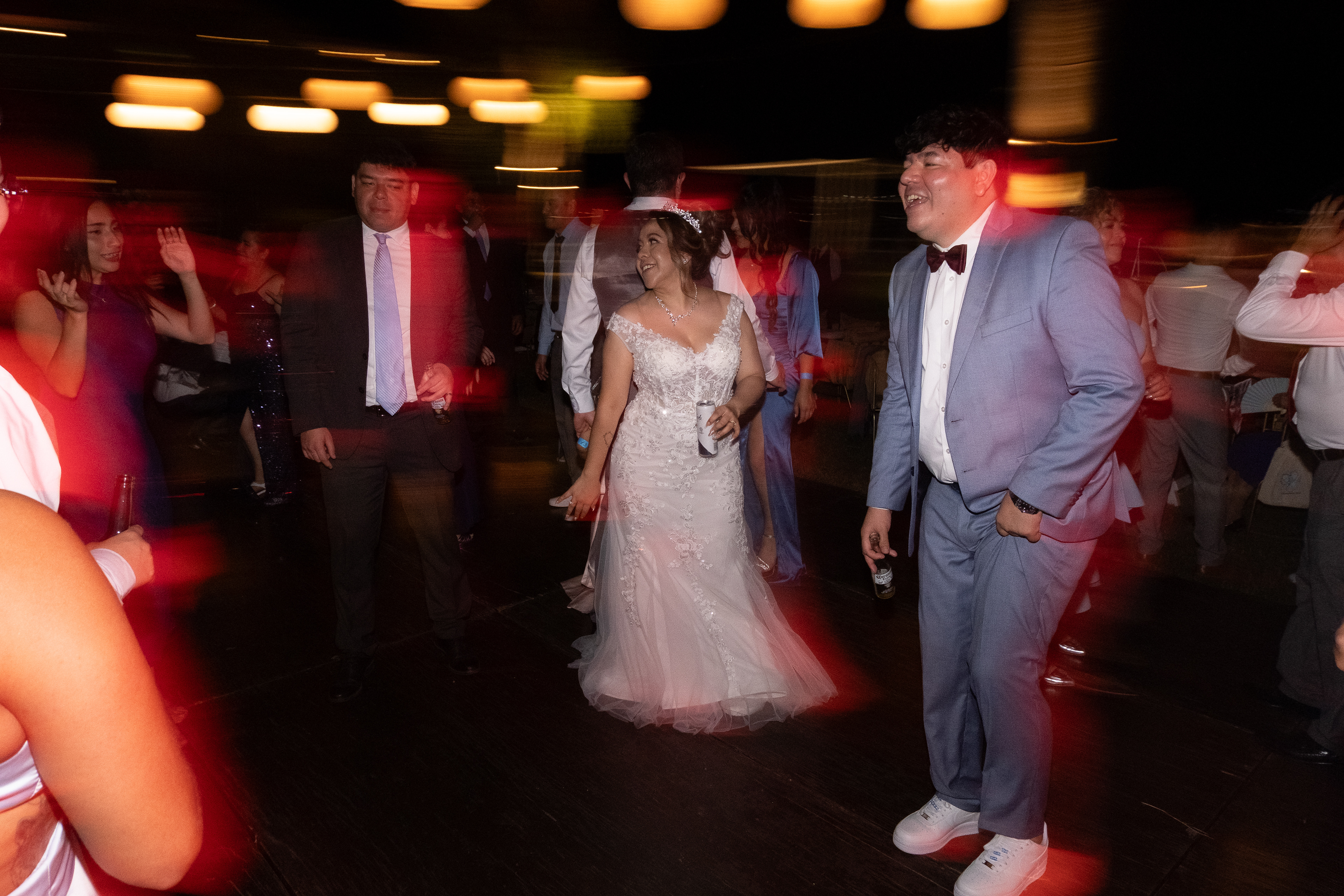 La boda se celebró frente al lago de Tequesquitengo, en un escenario abierto y rodeado de calma. El agua fue testigo de cada momento y, al caer la tarde, el cielo se pintó de tonos naranjas que envolvieron a los novios y a sus invitados. Algunos de los retratos más especiales surgieron en ese atardecer: siluetas, reflejos y miradas iluminadas por una luz cálida que parecía hecha a la medida del día. Un recuerdo que une el paisaje con la emoción de una promesa compartida.