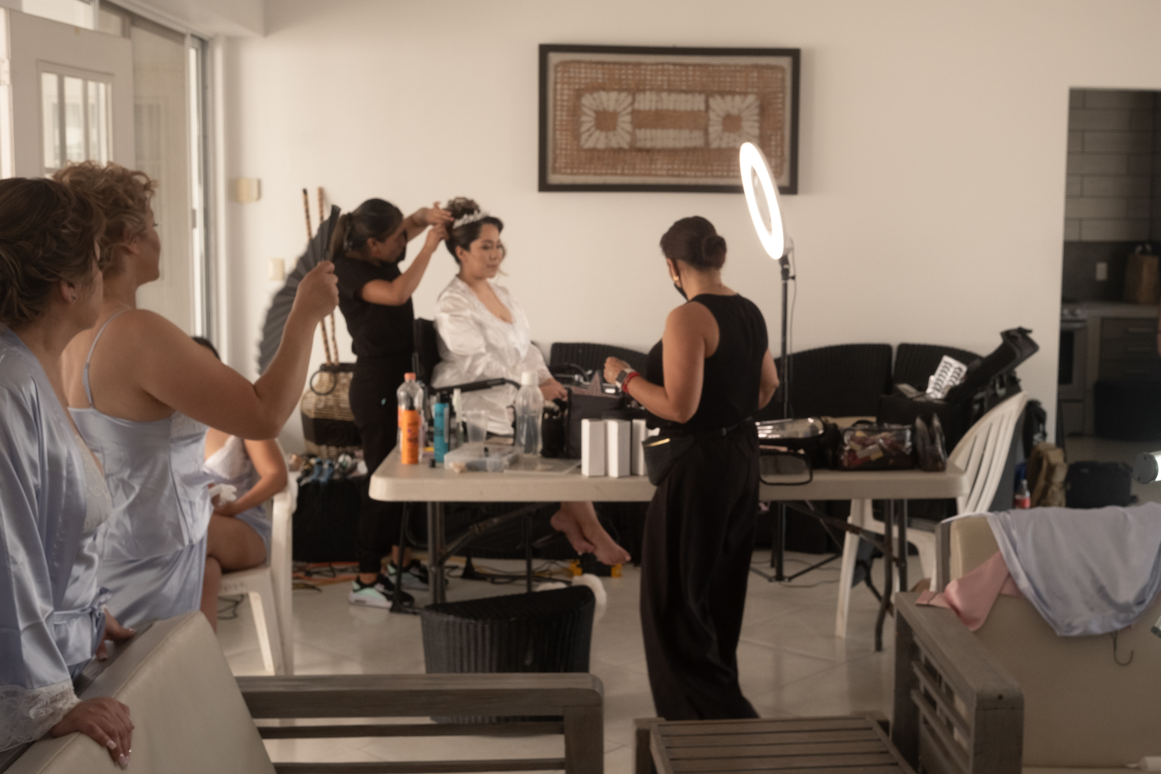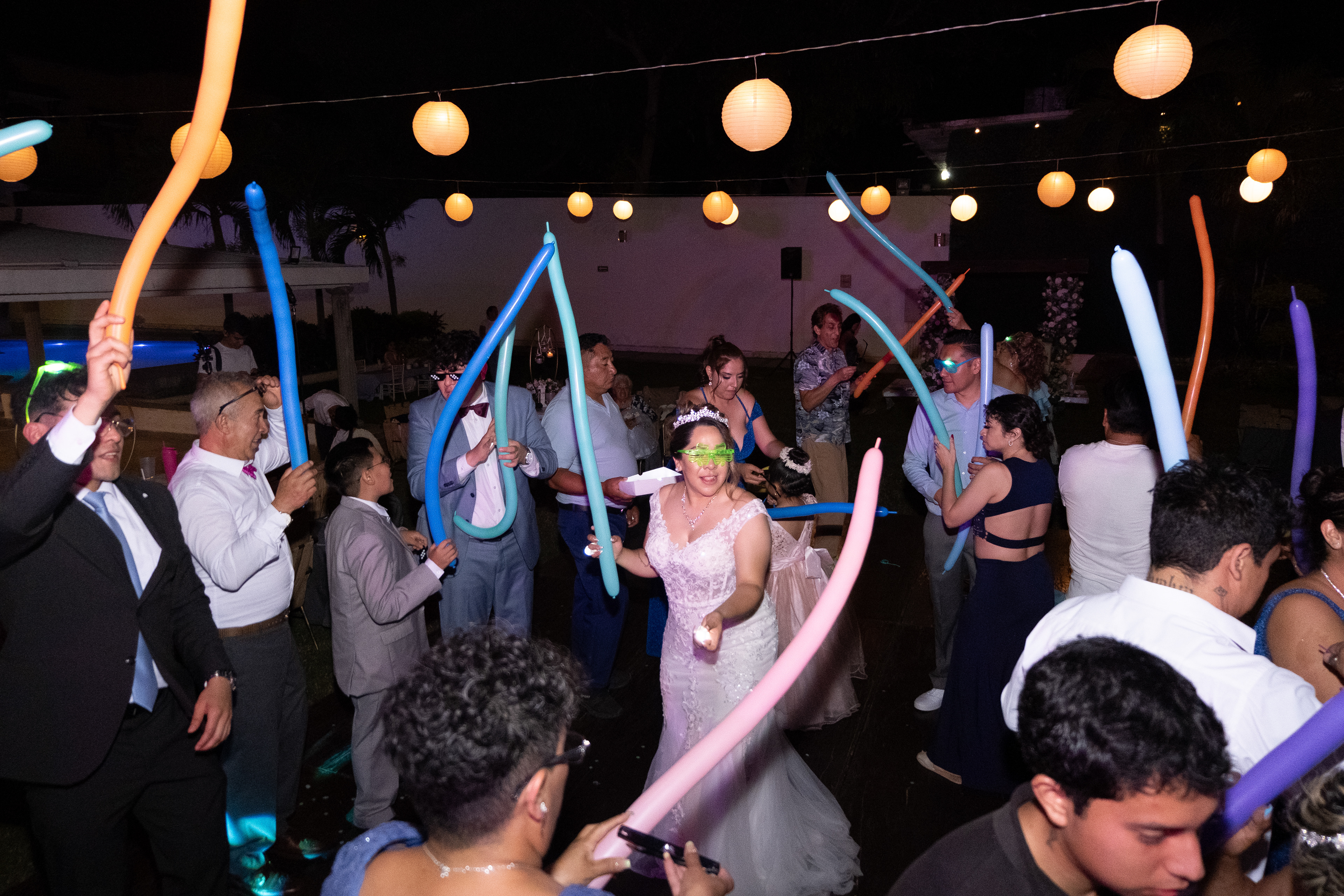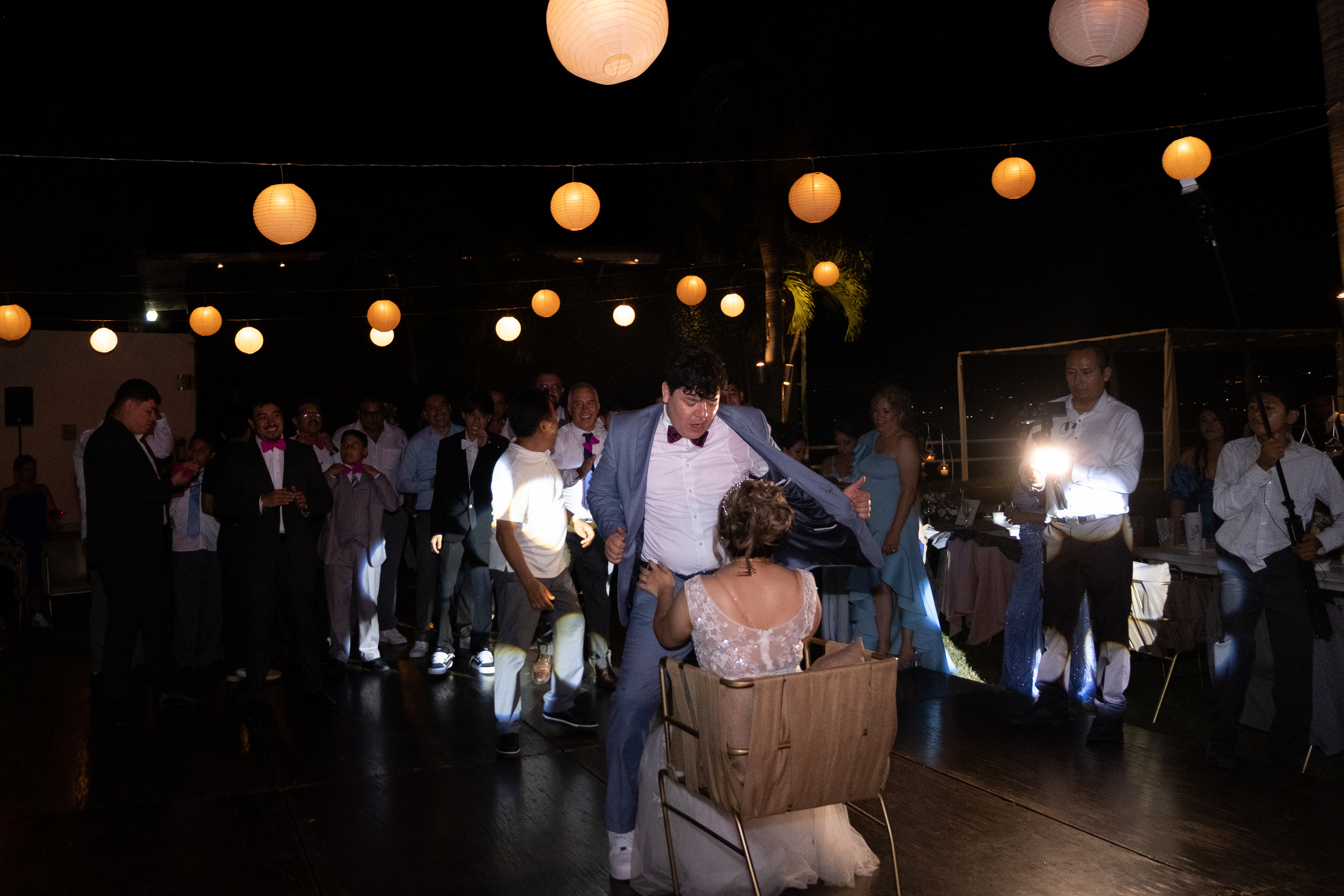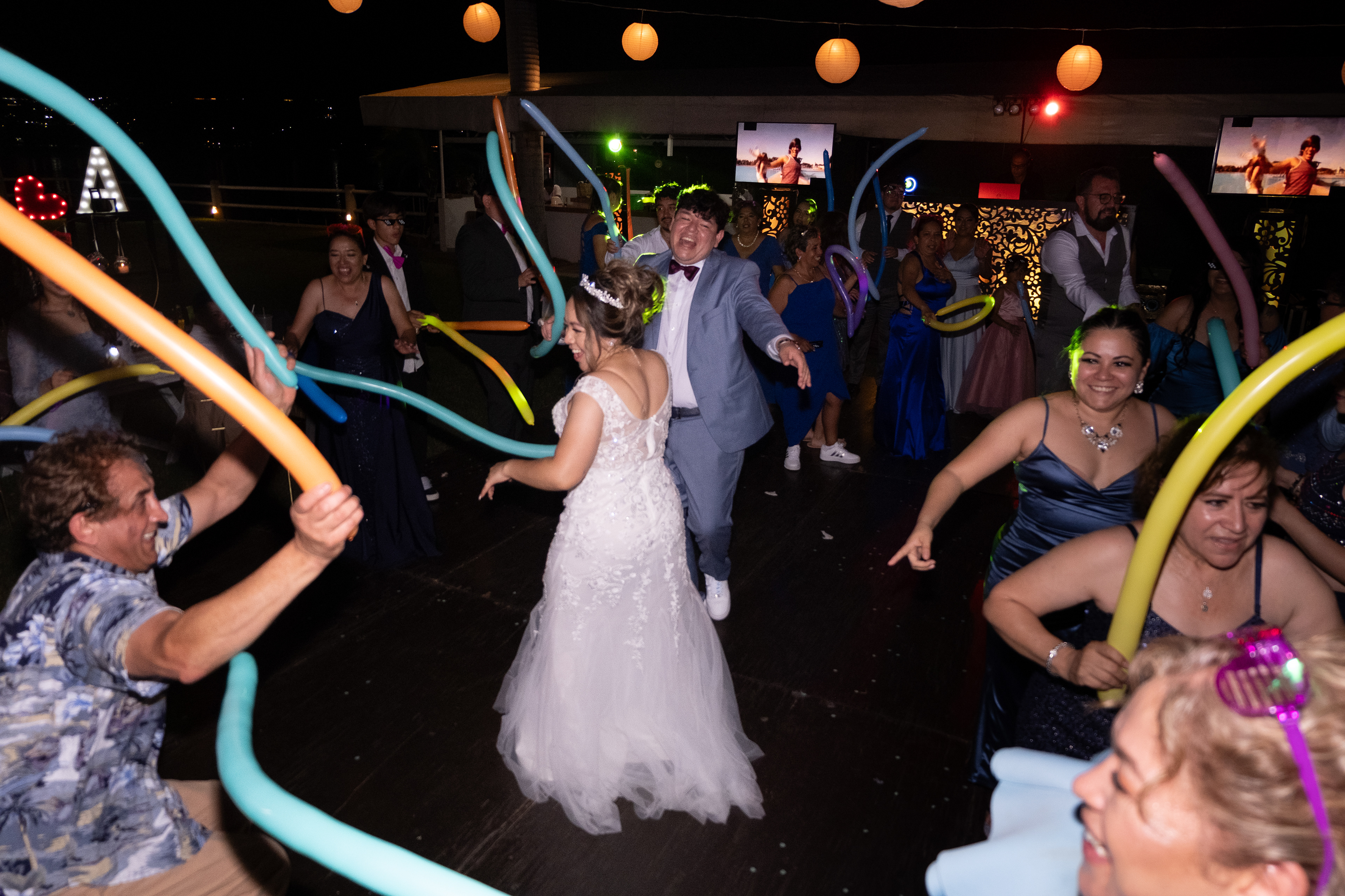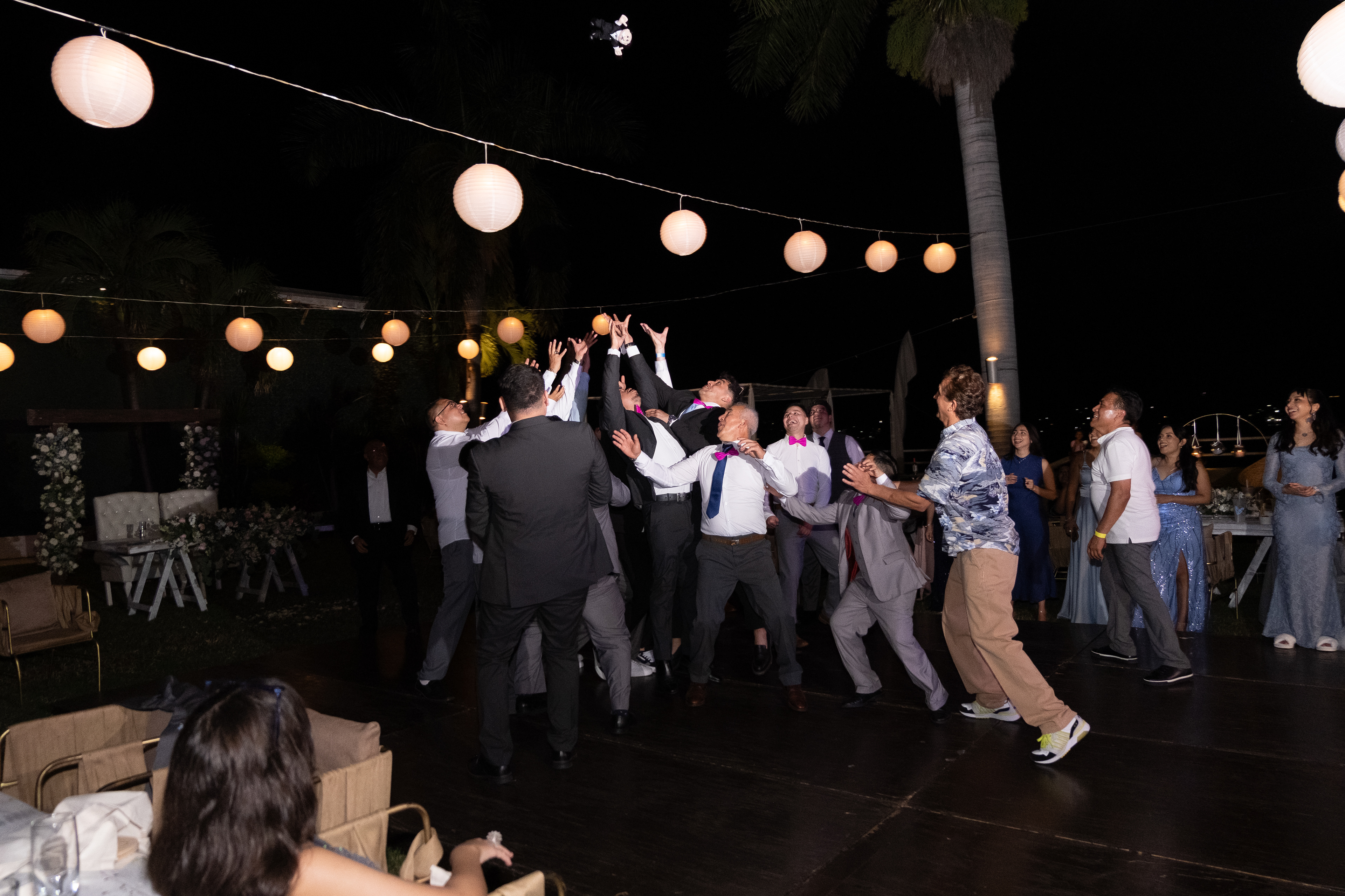 La boda se celebró frente al lago de Tequesquitengo, en un escenario abierto y rodeado de calma. El agua fue testigo de cada momento y, al caer la tarde, el cielo se pintó de tonos naranjas que envolvieron a los novios y a sus invitados. Algunos de los retratos más especiales surgieron en ese atardecer: siluetas, reflejos y miradas iluminadas por una luz cálida que parecía hecha a la medida del día. Un recuerdo que une el paisaje con la emoción de una promesa compartida.